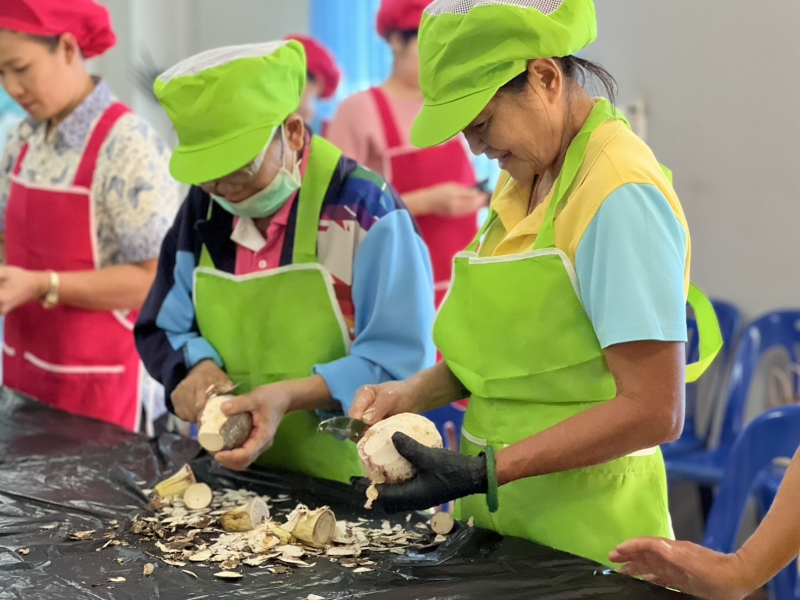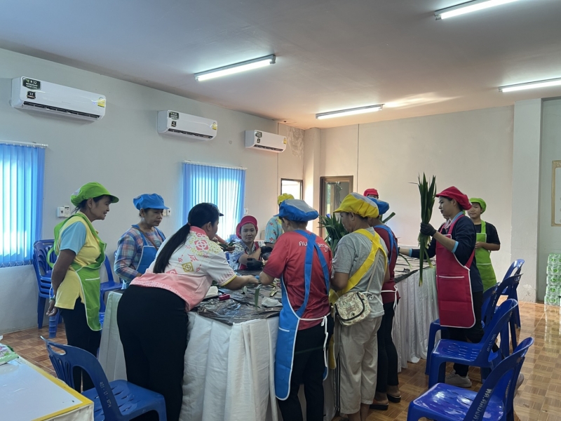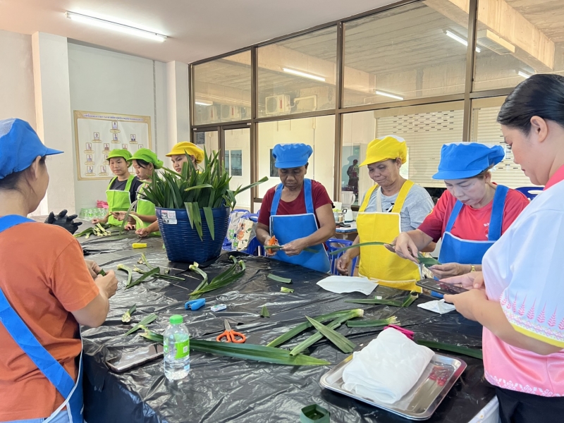 วันนี้บรรยากาศเต็มไปด้วยความสนุกและความอร่อย กับ "ขนมตะโก้เผือกกระทงใบเตย" หวานมัน หอมใบเตย อบอวลไปด้วยกลิ่นไอขนมไทยแท้ๆ