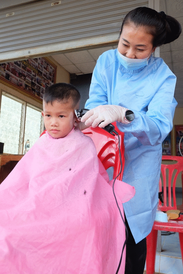 ออกให้บริการตัดผมเคลื่อนที่ บริเวณบ้านทับวังมน